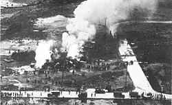 On February 21, 1922, Roma crashed in Norfolk, Virginia during a test flight. The airship left Langley Field around 2:00 PM with 45 people on board, most of whom were US Army airmen. There were also a few civilians on board the flight, including mechanics and government observers. After lifting off from Langley, the pilot, Captain Dale Mabry, set a course along the shore of Chesapeake Bay that took the airship over Buckroe Beach, and Fort Monroe, before crossing Hampton Roads and passing over Willoughby Spit en-route to the Norfolk Navy Base.[6] The crash of Roma was caused by failure of the airship's peculiar box rudder system, which allowed it to maneuver over tight areas. Witnesses on the ground reported seeing the entire box rudder slip sideways; suddenly uncontrollable, Roma flew straight into the ground at the Army's Norfolk Quartermaster Depot (now the location of Norfolk International Terminals) from an altitude of 1,000 feet (300 m). Just before the bow struck the ground, the dirigible contacted high-voltage power lines and burst into flames. A total of 34 people were killed, 8 were injured, and 3 escaped unharmed. Among the dead was Captain Mabry. The crash of Roma marked the greatest disaster in the history of American aeronautics up to that time.