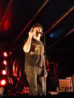 Humeau was a member of the band Oobik and the Pucks, that formed in 1995. It was after serious differences with their record label that the band reformed to become Eiffel in 1998. Eiffel saw success in France with their 2006 album Tandoori which peaked at 36 in the France Albums Top 150, spending 5 weeks on the charts.[5] In 2009 Eiffel released À tout moment. They recorded the song Le Temps des cerises in collaboration with Serge Teyssot-Gay and Bertrand Cantat, from the group Noir Désir to promote the album's release.[6] The album peaked at 16 on the France Albums Top 150.[7] The group launched itself on a tour, starting 29 October 2009 in Saint-Étienne.[8] Their most successful album Foule Monstre (2012) peaked at number 9 on the France Albums Top 150 and reached 78 on Swiss Albums Top 100.[9] The Foule Monstre tour saw the band tour in France, Belgium and Switzerland.[10]