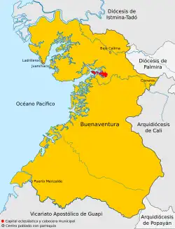 Its cathedral episcopal see is Catedral de San Buenaventura, dedicated to Saint Bonaventura, in the city of Buenaventura, Valle del Cauca Department.