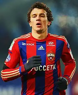 After leaving Rubin Kazan in the summer of 2014, Eremenko signed a four-year contract with PFC CSKA Moscow on 25 August 2014, for a €6 million transfer fee.[8] He was selected as the Best Player of October and December 2014 and March 2015 in the Russian Football Premier League.[9][10][11] He won the Russian Football Premier League MVP of the season 2014–15 award.[12]