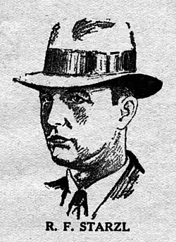 Born Roman Frederick Starzl, he was the son of John (born Johann) V. Starzl and Margaret Theisen. John V. Starzl was born April 9, 1865, in Bischofteinitz (later known as Věvrov) in the Austrian Empire, the son of Josef Starzl and Magdalena Ruba. Josef Starzl immigrated with his wife and 5 children (including John) in 1878 to the USA. John V. Starzl sold his pharmacy in Chicago around the time of his marriage and moved back to Le Mars, Iowa, near where his Bohemian immigrant parents had settled after immigration. There, he purchased the German-language newspaper, Der Herold, which later became Le Mars Globe Post, and raised Starzl and two other surviving children.[1] Starzl started his career as a reporter for this newspaper.[2] He reportedly started writing for pulp magazines as part of his efforts to raise enough money for a specific goal. Said goal was to acquire ownership of the newspaper and printing establishment associated with his family. Starzl eventually achieved this goal and retired from writing.[3] Or so the story goes. His writing career indeed lasted only six years (1929–1934), during which he published about 24 stories. But it is possible that his writing career ended as his duties in the newspaper increased. A decision of necessity rather than choice. He became a partner in the Globe-Post in 1934, and sole owner and publisher in 1940. He continued in this role until 1968, when his printing plant fell victim to a fire.[2] He was a member of both the German Rocket Society and the American Rocket Society. Later in life, he developed an interest in right-wing politics.[3]