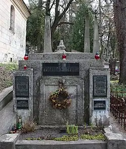 He died in Lviv and was buried in the family tomb in Lychakiv Cemetery (field No. 6).