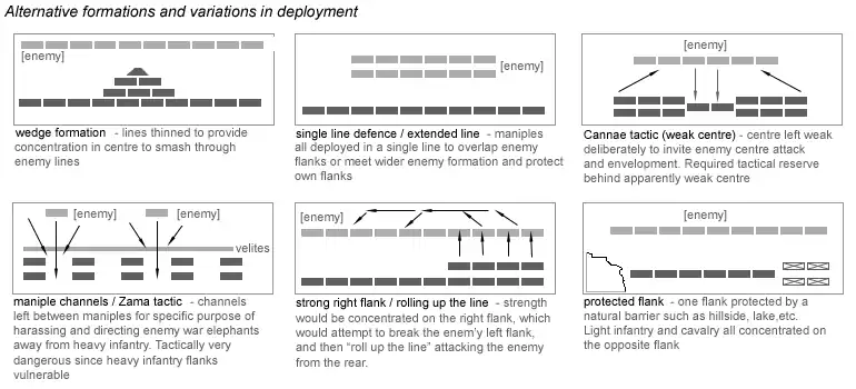 The manipular system allowed engaging every kind of enemy, even in rough terrain, because the legion had both flexibility and toughness according to the deployment of its lines. Lack of a strong cavalry corps, however, was a major tactical vulnerability of the Roman forces.