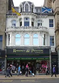 Romanes and Paterson began as "silk mercers" at 37 South Bridge in 1816.[5] They soon moved to 49 North Bridge. Both properties are in Edinburgh's Old Town.For various reasons the shop moved from specialising in silk to specialising in both silk and tartan.[6]