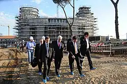 A groundbreaking ceremony for the temple was held 23 October 2010, with Monson presiding.[7] Only invited guests attended the groundbreaking, but the ceremony was rebroadcast to Latter-day Saint meetinghouses in Italy the following day.[11] Dignitaries at the groundbreaking included Vice Mayor of Rome, Giuseppe Ciardi, Italian senator Lucio Malan,[12] along with Monson, William R. Walker, and Erich W. Kopischke, each of whom were LDS Church general authorities.[13]