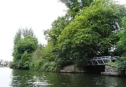 The island has always been a popular place for angling and Isaak Walton used to fish from here.[1] The island separates the weir stream from the navigation channel to the lock. Proposals to build a hydro scheme at the weir dated from 2004, with various revised schemes put forward since then.[2] A revised scheme, using Archimedes screws, went ahead in 2011 and began generating power in 2013.[3][4]