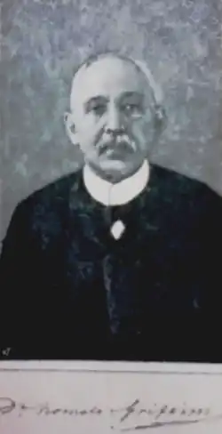 During the war of 1859 Griffine served as director and head physician at the Military Hospital of San Luca. After it was over, the valour he had demonstrated led to his being awarded the Legion of Honour and promoted to the rank of "Surgeon Major" in the National Guard.[2] Also in 1859, directly after the war, he was elected to the municipal councillor. Meanwhile, in 1862 he was a co-founder of the Italian Medical Association, and in his capacity as president of the Medical Committee of Milan he served on a number of commissions concerning the laws on health and hygiene, and the reorganisation at the national level of medical training. In 1862 he was a member of the hospital commission mandated to study nosocomial gangrene and suggest solutions for it. He worked on projects to study the establishment of district asylums, and in 1864, as the councillor responsible, was given the task of drafting a new regulation on the subject.[2]