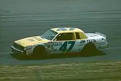 Bouchard began his NASCAR career in 1981 in the No. 47 J.D. Stacy Buick for owner Jack Beebe (Race Hill Farm team). He captured the 1981 NASCAR Rookie of the Year title even though he only raced in 22 of 31 events. He posted twelve top-ten finishes in the 22 races, including his only career win, in the Talladega 500 at Talladega Superspeedway. Running third to Darrell Waltrip and Terry Labonte on the last lap, he swooped under both of them as they battled side by side out of the final turn. The three cars crossed the finish line nearly simultaneously, with Bouchard winning in a photo finish.[2] After the race, Waltrip, who had been watching Labonte and not seen Bouchard pass him, asked, "Where the hell did he come from?" Waltrip has stated in interviews over the race that part of the reason he lost was because he did not try to block Bouchard as he believed that Bouchard was a lap down.