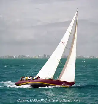 Condor, the Maxi Class yacht built in 1981, still sails as a passenger boat in Australia's Whitsunday Islands. In 1982, Nolan Bushnell (founder of Atari), commissioned Charley - a 67-foot sloop, designed by Ron Holland using the same design thesis as Kialoa. Charley went on to win Line-Honors in the 1983 Transpacific Yacht Race and other Pacific racing events.[5] In 1983, Peter Blake engaged Holland to design his next Whitbread Around the World Race yacht, Lion New Zealand, a 78-foot maxi, which claimed line honours in the 1984 Sydney to Hobart as well as second on line in the 1985-86 Whitbread.