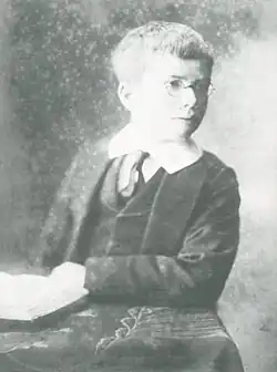 Fisher was born in East Finchley in London, England, into a middle-class household; his father, George, was a successful partner in Robinson & Fisher, auctioneers and fine art dealers.[35] He was one of twins, with the other twin being still-born[36] and grew up the youngest, with three sisters and one brother.[37] From 1896 until 1904 they lived at Inverforth House in London, where English Heritage installed a blue plaque in 2002, before moving to Streatham.[38] His mother, Kate, died from acute peritonitis when he was 14, and his father lost his business 18 months later.[35]