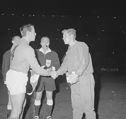 ![]() Flowers (right) in 1964, shaking hands with Daan Schrijvers | |||||||||||||||||