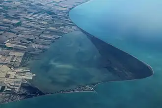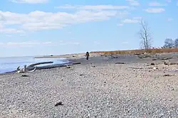 Rondeau Provincial Park includes most of the peninsula (excepting the very base), and much of Rondeau Bay. The peninsula is occupied by a series of low ridges and sloughs.[10] A narrow sand spit extends west, sheltering the marshes and bay, and nearly reaching the town of Erieau.