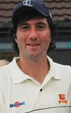 He started his career playing for Lancashire in 1990, before he moved to Essex in 1994.[3] At Essex, he gained cult status,[4] before he became captain in 2000,[5] and is generally accepted to have done a decent job in charge, helping to bring through promising players such as Alastair Cook, Will Jefferson and Ravi Bopara. After Graham Gooch stepped down as the club's head coach prior to the start of the 2005 season, Irani assumed some of these responsibilities in addition to his role as county captain.[4]