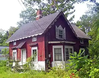 The cottage is visible from where River Point Road crosses the tracks. It is a one-and-a-half-story frame house on a stone and brick foundation with board-and-batten siding, three bays wide at the front. Its steeply pitched gabled roof is shingled in asphalt, pierced by a central brick chimney and finials and cross-gabled in the west (rear) elevation.[2]
