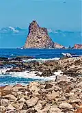 The Roques de Anaga are two monolithic rocks forming some of the most emblematic natural monuments of Tenerife (Canary Islands, Spain). Roque de Tierra stands 179 meters above sea level and is closer to the main island while Roque de Fuera, at 66 meters above sea level, is further away. Both rocks are also included in the European Union's Natura 2000 ecological network of protected areas. They are located off the north-east coast of Tenerife.