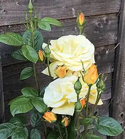 There is also a climbing variety, which was discovered by Pearce in 1978 and introduced as 'Arthur Bell, Cl.'.[5] In 2001, the variety was granted the Royal Horticultural Society's Award of Garden Merit.[6]