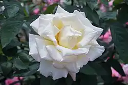 Rosa 'Garden Party' is an ivory hybrid tea rose cultivar created by Herbert C. Swim in 1959. Its parents are the hybrid teas 'Charlotte Armstrong' (Lammerts, 1940) and 'Peace' (Meilland, 1939).