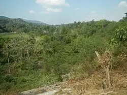 The topography of Rosario is characterized by a valley with mountainous terrain, predominantly shaped by the sharply sloping mountains of the Cordillera Central range, which runs parallel to the coast of the South China Sea. To the west, the land features narrow plains and valleys, interspersed with shallow rivers and streams. Approximately 8% of the land is level or gently sloping, while 18% is undulating to rolling. Another 30% of the land is rolling to moderately steep, and 50% is steep.[15]