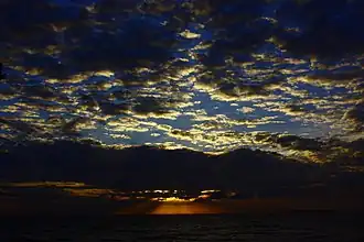 The park is molded by the Caribbean and Panama currents, as well as freshwater from the Canal del Dique.[8] Sediments brought from Magdalena River by the channel is having a negative effect of the park, as it deteriorates the reef.[8] There are no bodies of freshwater in the park, but there is brackish water in some of the lagoons on the islands.[3] Average yearly temperature is 27–30 °C.[4]