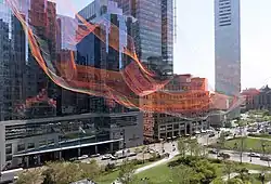 In 2015, the Conservancy commissioned the installation of a work called "As If It Were Already Here"[107] by Janet Echelman. The installation was attached to three adjacent high-rise buildings, so that it was suspended above the Fort Point Channel parks. In 2023, the Boston Society of Architects awarded the work its Harleston Parker Medal, which recognizes “the most beautiful piece of architecture, building, monument, or structure built in the metropolitan Boston area in the past 10 years”.[108]