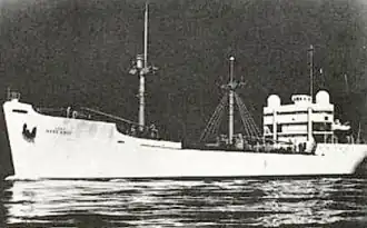 Title to the ship was transferred to the U.S. Air Force on 1 April 1957 and, after conversion, which operation as a range instrumentation ship under Commander, USAF Eastern Test Range (AFETR).[1][6] The range and its facilities were operated by Pan American World Services and RCA under contract.[7] On 1 July 1964 the USAF tracking ships were transferred to the custody of the Military Sea Transportation Service (MSTS) for operation. MSTS had administrative control of the ships and operational control when the ships were in port. AFETR had operational control when the ships were at sea. At the time of the transfer USNS Rose Knot and USNS Coastal Sentry were to be assigned to Project Gemini.[6]