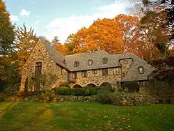 By 1910, however, craft production had faded and the community had become essentially a commuter suburb of Philadelphia, using the nearby Moylan - Rose Valley Station.[10] The buildings designed or renovated by Price during this period may be Rose Valley's major achievement. According to George E. Thomas, "Rose Valley is of exceptional importance, a major American architectural landmark."[8]: 90