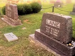 Lane died in her sleep at age 81 on October 30, 1968, just as she was about to depart on a three-year world tour. She was buried next to her parents at Mansfield Cemetery in Mansfield, Missouri.