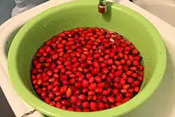 Rose hip soup (Swedish: nyponsoppa) is a Swedish soup made from rose hips.[2] It is served as a beverage or as a dessert with milk, cream or vanilla ice cream along with small almond biscuits.