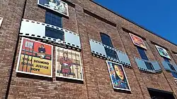 Despite the historical significance of the building, it received no heritage recognition until 2015 when Raymond Pentz, a new owner of the nightclub, made a plaque to display on the front of the theatre honouring Viola Desmond's stand against racism.[15] However, in late October 2015, significant roof problems led the building's owner to close the nightclub and sell the building to MacGillivray Properties, a law firm and real estate development company. MacGillivray demolished the interior floors and restored the exterior of the theatre to convert it into office and retail space. The renovations uncovered vintage film projection equipment.[16] Some original seats from the Roseland theatre were salvaged and have been preserved and used in displays by the Nova Scotia Museum, the Canadian Museum of History and the Bank of Canada Museum.[17] In 2016, teachers and students of the New Glasgow Academy began to use the historic theatre as a destination for educational marches on Martin Luther King Day. Following class study of the history of the civil rights they marched to the Viola Desmond plaque on the theatre building.[18] The Roseland's owners sponsored an art competition in 2018 for murals to depict the human rights history of the theatre.[19] A custom motorsports company, Bespoke Motor Company, opened in the former theatre in 2021.[20]