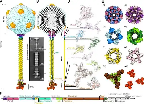 - ^ a b Huang, Yang; Sun, Hui; Wei, Shuzhen; Cai, Lanlan; Liu, Liqin; Jiang, Yanan; Xin, Jiabao; Chen, Zhenqin; Que, Yuqiong; Kong, Zhibo; Li, Tingting; Yu, Hai; Zhang, Jun; Gu, Ying; Zheng, Qingbing (2023-06-17). "Structure and proposed DNA delivery mechanism of a marine roseophage". Nature Communications. 14 (1): 3609. Bibcode:2023NatCo..14.3609H. doi:10.1038/s41467-023-39220-y. ISSN 2041-1723. PMC 10276861. PMID 37330604.