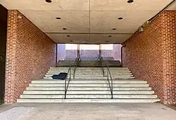 Between 1970 and 1971, the original, Tubby-designed 1920s school building was demolished and replaced by the current structure, designed by Caudill Rowlett Scott.[2][5][8] However, there are numerous remnants of the old building that remain - most notably the middle segment of the stairway underneath the school (which made up the middle section of the original steps up to the original building's main entrance) and the main gymnasium (which was built with the original school for the same purpose).[9] Lecture Room B was the original school's auditorium, and the room behind it was the original stage. The school maintains a collection of historic photographs in "The Commons", including many of the old school.[10]