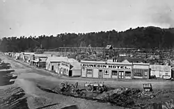 Ross was established in the 1860s, during the West Coast gold rush, and became an important centre for miners.[5] At its largest, the town had around 2,500 inhabitants, but the population declined after local goldfields were depleted in the early 1870s.[6] Quartz was occasionally mined on Mount Greenland, a nearby ridge, but little more gold was found until two miners discovered a large 3.1-kilogram nugget in 1909, which was later named the "Honourable Roddy Nugget", after Roderick McKenzie, the Minister for Mines at the time.[7]