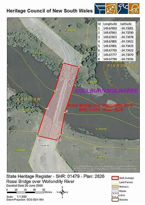 | Official name | Rossi Bridge over Wollondilly River |