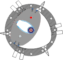 The reason why until now the geometry of curves of constant width could not be put to practical use in the gear design is that no conventional gear structure with the regular rolling on of the gears would permit the exact rolling-on of the singularities. The RKMs solve this problem by introducing the inversely conjugated gear system, which makes it possible to have singular trajectories of the axes of rolling-on gears and, thus, allows the transfer of the angular momentum during the passage of the piston through its stop positions.[2]