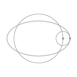 A transformation to a coordinate system that subtracts the overall circular motion leaves the eccentricity of the ellipse-shaped trajectory. the center of the eccentricity is located at a distance of from the main center: