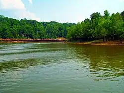 Fishing is one of the most popular tourist activities at this lake. It averages about 300 pounds of fish per acre.[6] The upper region of the lake is slightly more fertile (more nutrient-rich) than the lower region. Different species of fish in the lake include: spotted bass, largemouth bass, hybrid striped bass, catfish, crappie, bluegill, and white bass.