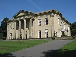 In 1811, John Clarke (died 1857) of York, architect of the Commercial Buildings in Leeds city centre, was commissioned by Thomas Nicholson to design the Mansion House.[16] Formally known as Roundhay Park Mansion, the large mansion was built in ashlar stone in classical Georgian style; of two storeys with seven bays, the centre three set behind an iron portico.[17] Thomas's son, Stephen Nicholson Esq., inherited the house and became the Lord of the Manor of Roundhay. Roundhay township's 1,467 acres were recorded in 1842 as being "mostly the property of Stephen Nicholson".[15]