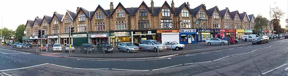 Until 1810, Gipton Wood was Gibton Forest separating Leeds from Roundhay Park and a turnpike road was constructed "from Sheepscar to Roundhay Bridge".[7][8] After the road was built the population increased from 84 in 1801 to 186 in 1822, mainly in grand houses for wealthier citizens of Leeds.[7]