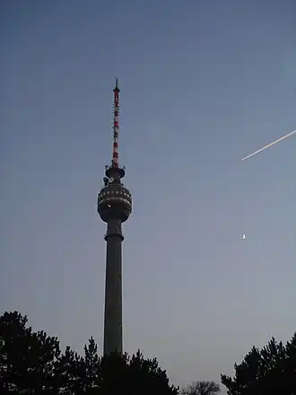 The Rousse TV Tower is a 204-metre-high TV tower built of reinforced concrete at Rousse, Bulgaria. Originally, the structure was constructed as a 206-metre-high TV tower with a cafe/restaurant on top and was the tallest one on the Balkan peninsula until 2001.[1] In the 1990s an additional antenna was added bringing the height to 210 metres. And, in March 2007, the antenna was reconstructed bringing its height to 204 metres.