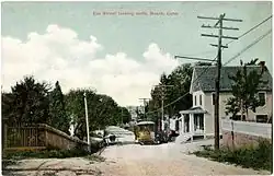 A Groton and Stonington Street Railway trolley on Elm Street in Noank around 1910