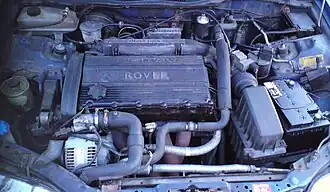 Rover introduced the turbocharged engine in 1992 with the Rover 220 Turbo Coupe, making it the fastest Rover in production, the engine made 197 bhp (147 kW; 200 PS) at 6,100 rpm, although the torque was electronically limited to 171 lb⋅ft (232 N⋅m) at 2,100 rpm due to Rover's own PG1 gearbox not being able to cope with the amount of torque that the engine could produce.[1] The limited torque gives the engine a very flat overall torque curve.