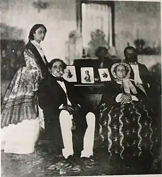 In November 1829, Michael arrived in France, still in his private capacity (though backed by Eynard). He was received by the King of France, Charles X, as well as by the Dauphin Louis.[62] The other Soutzoses continued to live on Swiss territory to April 1830, when Charles offered to provide for the education of Michael's first two sons.[63] Michael moved permanently to Paris around 18 April, with the press calling him a diplomatic envoy of the new Greek state;[64] this status was only acknowledged by Kapodistria in late June.[65] His last activity in Switzerland was his attempt to contact Leopold of Saxe-Cobourg, who was visiting Geneva, and whom Greeks politicians intended to appoint as their king.[66] Roxani and her children joined him on his new mission in May, when they registered in Paris at the Hôtel de Bruxelles;[67] two months after their arrival, France went through a liberal revolution which toppled Charles X and created the July Monarchy. At some point during the following decade, the entire family posed for a portrait by Dupré, this time in their Western costume.[68] One of Kapodistrias' letters to Eynard shows that, in November 1830, Soutzos and his "large family" were still struggling financially: "You plead that we grant him 36,000 francs each year, by act of government. [Yet] there is not one French-speaking Greek who wouldn't fancy himself capable of being our diplomatic agent in Paris. There is not one Greek who doesn't detest those Phanariote Greeks, and from the very bottom of his heart."[69]