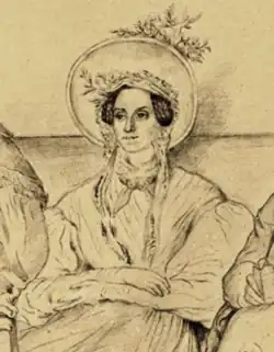 Michael returned to take up a position in the Greek Council of State, but, after renewed scandal over his Russian commitments,[74] resigned all his public offices in 1839.[75] Of Roxani's sons, Konstantinos (also known as "Suțu-Dudescu") was an officer in both the Hellenic[9] and French Navies, seeing action with the latter during the Pastry War of Mexico.[38] The Soutzoses lived in Athens, as did the Argyropulouses; both Roxani and her sister Rallou set up "philological salons" to provide for the education of Greek women.[76] Ioannis "Michalvoda" continued to serve as a diplomat in Russia, where he married Yekaterina Dmitrievna Obreskova, daughter of a Privy Councillor,[77] and herself noted for sponsoring composer Frédéric Chopin.[78] Obreskova was a presence at the court of Otto and Amalia, alongside Roxani's daughters Maria Zographos and Eleni Soutzos;[79] through her daughter Rallou, Roxani was the mother-in-law of jurist Petros Paparrigopoulos.[80]
