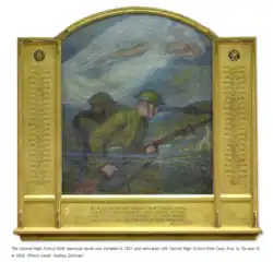 "In the fall of 1917 Gamble traveled to France yet again, this time in service to a hospital unit during World War I. There he worked to serve wounded Italian, French, British and American soldiers. A letter he wrote to his mother was published in the Detroit Free Press in 1918 describing [the] shelling and his hopefulness that the tide was turning in the Allies favor over the Germans. The Central High School June class of 1918 and the alumni association requested Gamble paint a mural to commemorate the fallen classmates of Central High." Wayne State University, University Art Collection.