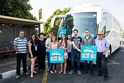 In its first three years the organization focused on operating lines by itself, when in 2018 the organization pivoted to impact on the municipal governance. The organization promoted public transportation on Saturday during Israeli the municipal elections in 2018 and called for public support from politicians who promised to promote Saturday transportation.[11] In 2019 the organization started to operate public transportation on Saturday through cooperation with mayors who were chosen in 2018, in municipalities throughout Israel, including: Tiberias,[12] Ramat Gan,[13][14] Kiryat Ono,[15] Ganei Tikva, Ariel,[16] Modi'in-Maccabim-Re'ut[17] and Ramat Hasharon. In November 2019 "Na'im Busofash" (Hebrew for both "fine in the weekend" and "moving in the weekend") started its operation, a bus line network through Israel's central district initiated by Noa Tanua and led by the city of Tel Aviv.[18] It is the first and only wide scale change in the operation of Saturday public transportation in Israel. In 2017 he was chosen for "People of 2017" by Time Out Tel Aviv,[19] in 2018 he was chosen as one of the "36 under 36" of Calcalist.[20] That year he participated in the translation of the fanfiction "Harry Potter and the Methods of Rationality",[21] a book promoting rational thinking among adults and youth. Since 2018, Schwartz Tichon writes in the blog "If I were finance minister" in TheMarker website,[22][23] discussing economic issues advocating for utilitarianism and classical liberalism. Schwartz Tichon also participates in some other media outlets such as Globes, Mako, Ynet and "The Congress" podcast.[24]