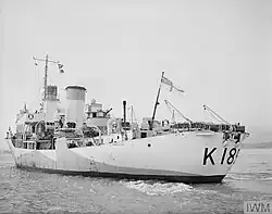 HMS Lady Shirley was a fishing trawler requisitioned by the Royal Navy in 1940 and converted for anti-submarine warfare.[13] It went into service in January 1941 and served with the 31st Anti-Submarine Group based at Gibraltar under the command of Lieutenant Commander Arthur Henry Callaway DSO RANVR, sinking the U-111.[14][15]