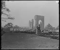 The Garden Palace grounds being the highest point have excellent views and are maintained as lawn areas, garden beds, Australian shrubs and turf species. The area was originally enclosed by a paling fence for grazing the Governor's stock. An ornamental fence was constructed along Macquarie Street and in the grounds stood the Garden Palace built 1879 which was destroyed by fire in 1882.[2]