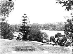 Charles Moore directed the reclamation of and expansion of the "Lower Garden" into Farm Cove, extending the gardens' pleasure grounds with curving pleasure walks, tree and shrubbery plantings. This work took place over 30 years, resulting in a gardenesque parkland which retains much of its original layout and composition today. Within this layout there are collections of plants of note, including from the Canary Islands, New Zealand and the Pacific Islands.[2] The lower gardens feature the Band Lawn, the main Ponds, the HSBC Oriental Garden, the Yurong, Victoria Lodge, Henry Lawson Gates and the Maiden Pavilion.