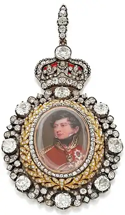 The Royal Family Order of George IV is an honour that was bestowed as a mark of personal esteem on female members of the British royal family by King George IV. It was the first Royal Family Order issued in the United Kingdom. Prior to George IV's accession in 1820, both ladies and gentlemen of the Court, as well as female members of the royal family, had worn the Sovereign's portrait set in a jewelled frame. George IV formalised the order.[1]