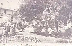 In 1793 the hospital exchanged location with the Lock Hospital, which suited both hospitals and moved to Donnybrook, a suburb of the city.[5] It was remodelled by James Rawson Carroll in the 1880s and received a Royal Charter and became the "Royal Hospital for Incurables, Dublin" in 1887.[6] In the 1980s it started to specialise in rehabilitation for the elderly and services for young disabled adults and, at that time, was renamed the "Royal Hospital, Donnybrook".[6]